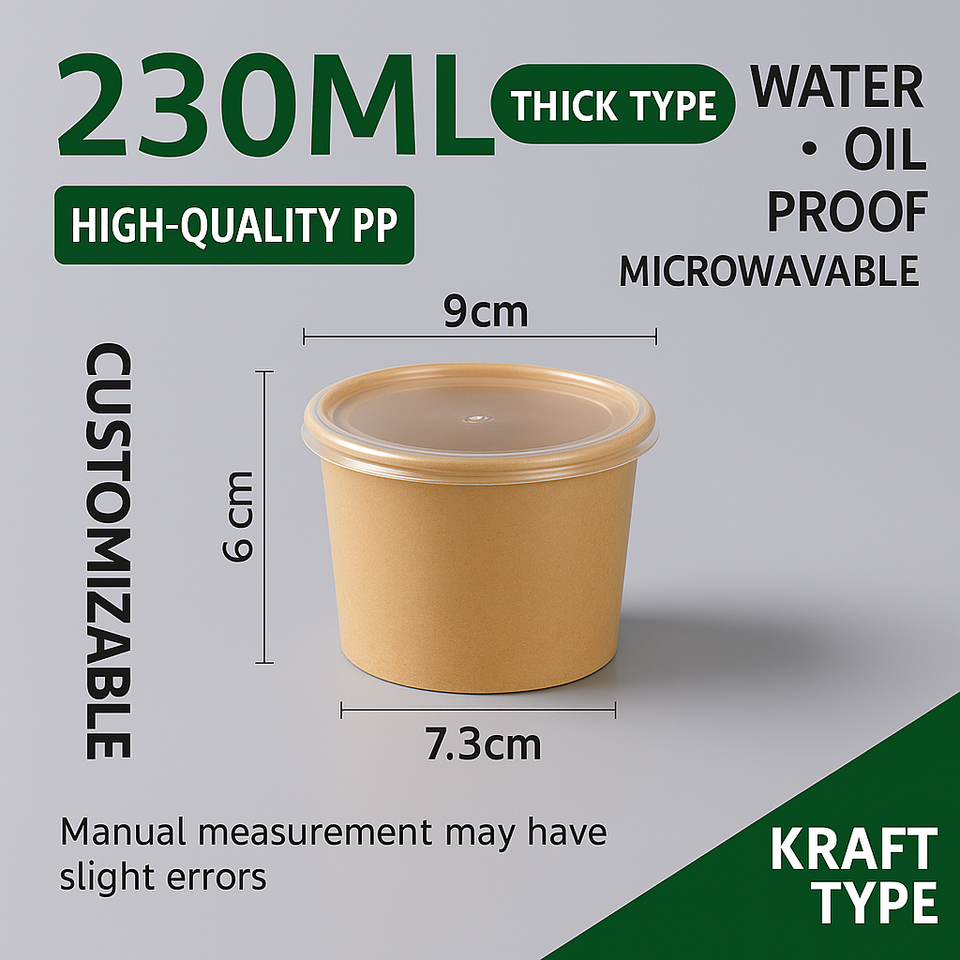 ถ้วยกระดาษคราฟท์แบบหนากล่องบรรจุภัณฑ์แบบใช้แล้วทิ้งเกรดอาหารกันรั่วกล่องใส่น้ำซุปกล่องกลมพร้อมฝาปิด