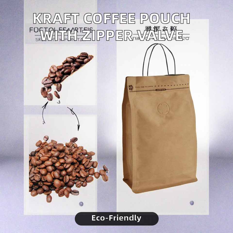 ถุงกระดาษคราฟท์แบบตั้งได้สำหรับอาหารสัตว์เลี้ยง ก้นแบน มีซิปด้านข้าง บรรจุภัณฑ์ PE พร้อมวาล์วระบายอากาศ รีไซเคิลได้