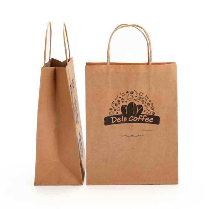 ถุงกระดาษคราฟท์หูหิ้ว, ถุงใส่กลับบ้านสำหรับร้านกาแฟ, ถุงใส่กลับบ้านสำหรับร้านอาหาร, โลโก้แบรนด์ตามสั่ง, มีหลายสีให้เลือก