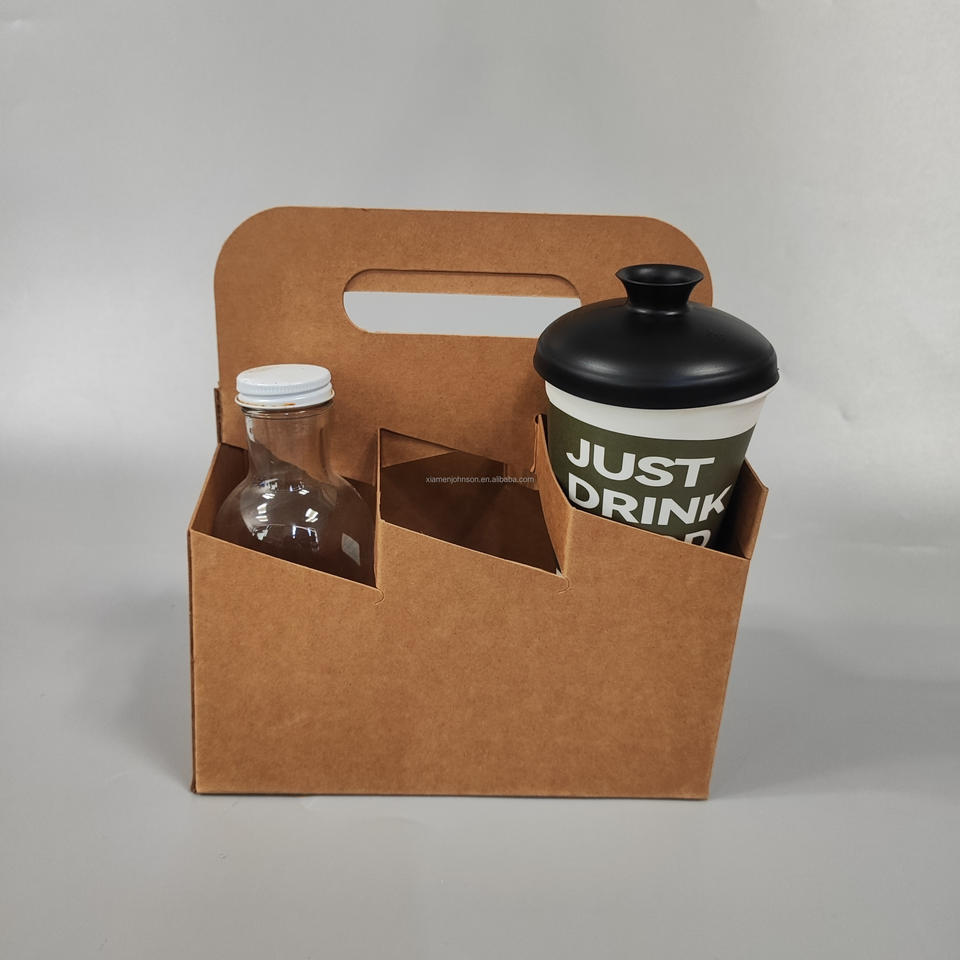 ถาดกระดาษคราฟท์แบบพกพาสองถ้วยที่วางแก้วเป็นมิตรต่อสิ่งแวดล้อม