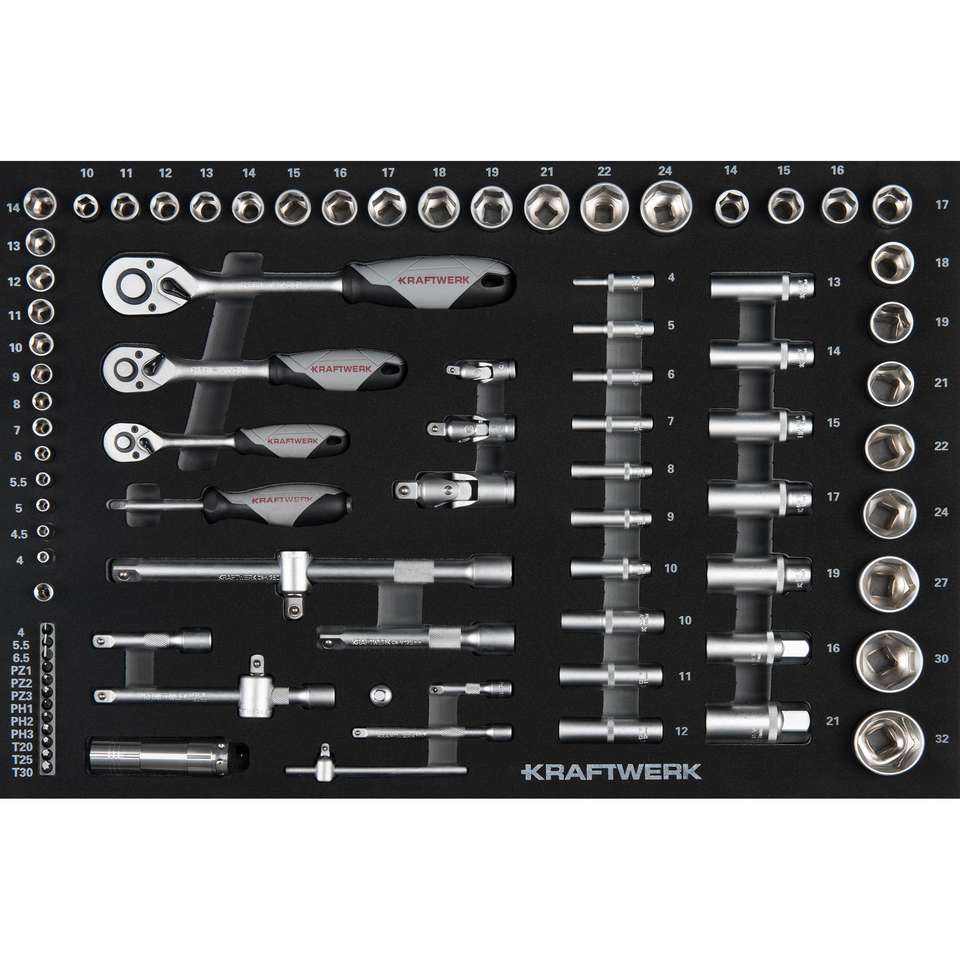 แทรกชุดซ็อกเก็ต kraftwerk, 1/4 “+ 3/8“ + 1/2 ”, 86-pcs