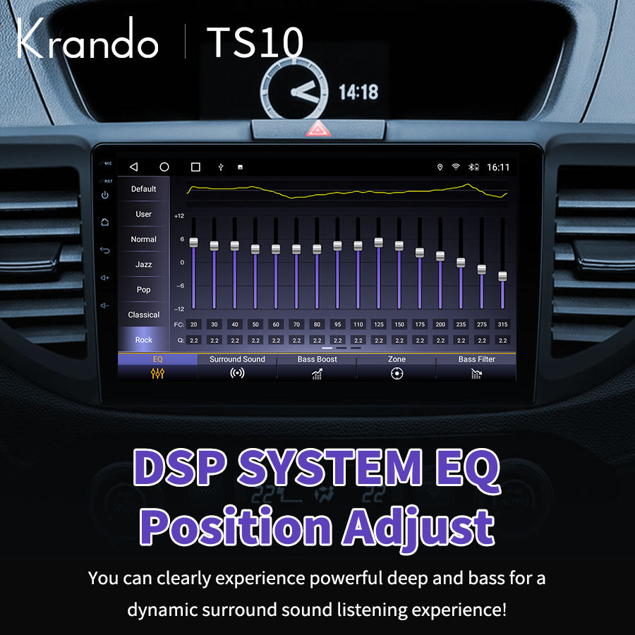 รองรับบลูทูธ, GPS ในตัว, เครื่องเล่นซีดี, เครื่องเล่น MP3 / MP4, เครื่องรับวิทยุ, หน้าจอสัมผัส, WIFI/3G,Playstore,Steering wheel control,DAB+