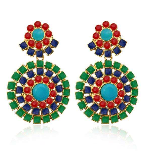 Kriaa ต่างหูหยด1304956B ชุบทองโรสโกลด์ทองคำขาวประดับเพชรเพทายเทอร์ควอยซ์สำหรับงานแต่งงานและปาร์ตี้