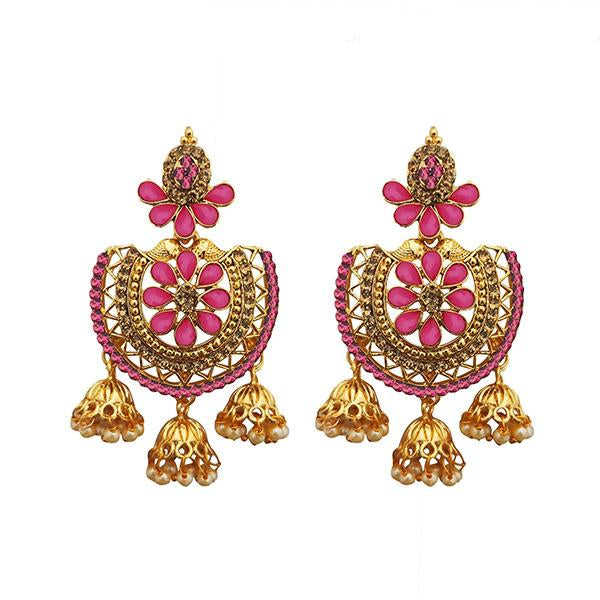 Kriaa ต่างหูแบบห้อยชุบทอง1312905A สีชมพูออสเตรียหินเทอร์ควอยส์เพชรเพทายสีโรสโกลด์วัสดุสำหรับงานแต่งงาน