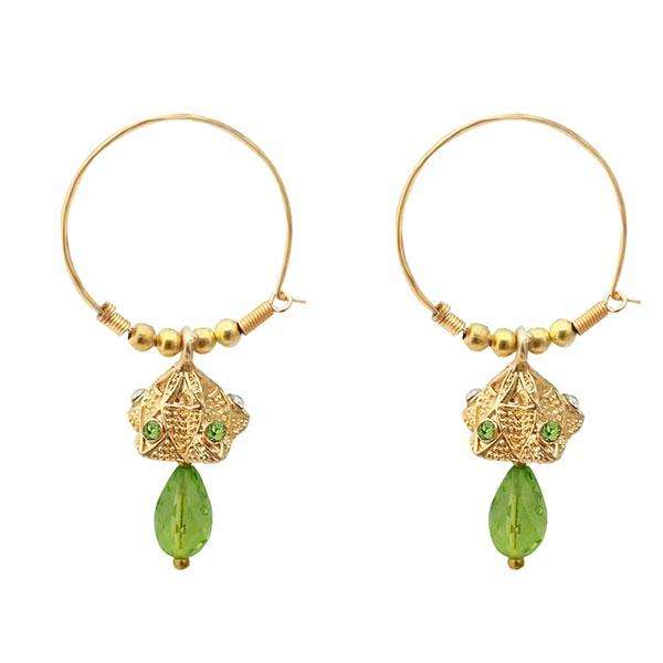 ต่างหูแบบหยดน้ำ Jhumki ชุบทองสีเขียว1313710D kriaa สไตล์ออสเตรีย