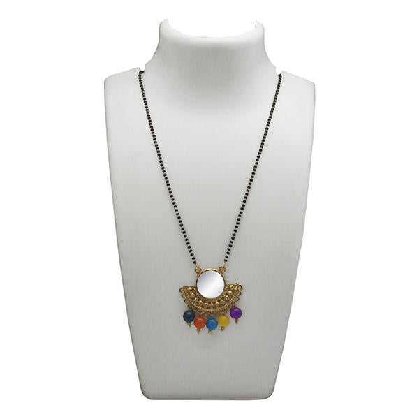 สร้อยคอลูกปัดแฟชั่น kriaa 1503046 mangalsutra หลากสีพร้อมกระจกสีดำ1503046ทันสมัย