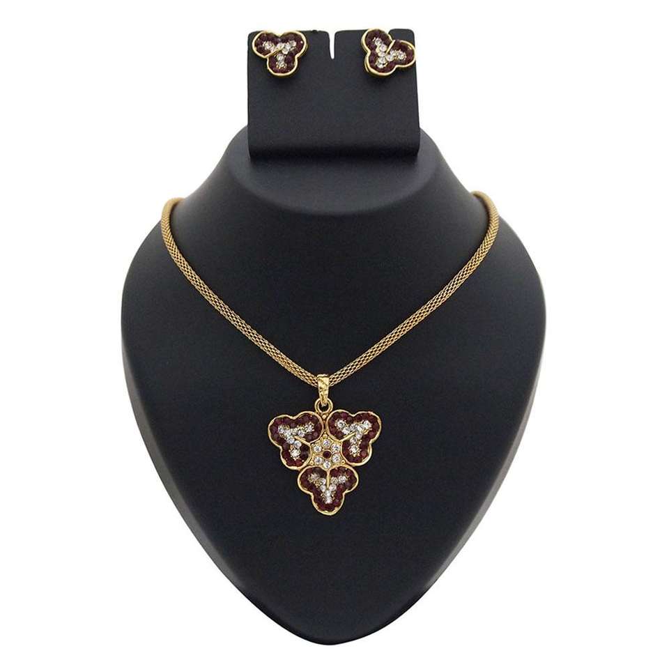 Kriaa จี้ชุบทองพร้อมชุดเครื่องประดับหินออสเตรียสีแดงชุด1200308