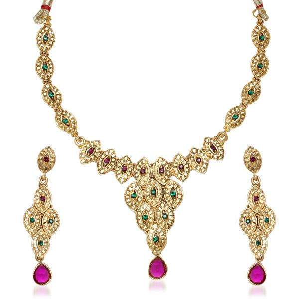 Kriaa ชุดเครื่องประดับที่ดี-1100531สร้อยคอชุบทองหินออสเตรียสีม่วง