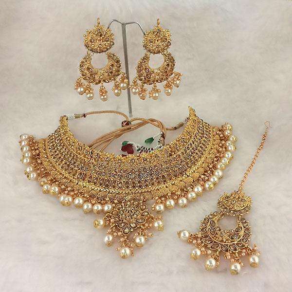 ชุดเครื่องประดับ kriaa สร้อยคอโชกเกอร์หินสีขาวออสเตรียพร้อม1113503C Maang Tikka