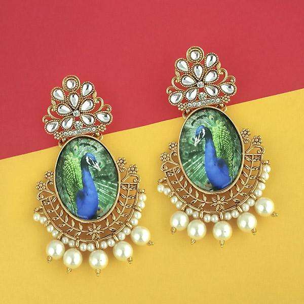 Kriaa ต่างหูทองดีไซน์นกยูง kundan 1315120เครื่องประดับแฟชั่น