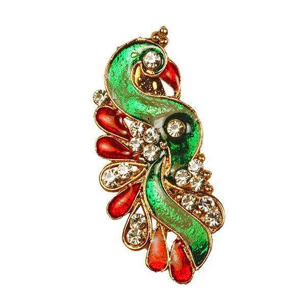 Kriaa meenakari เข็มกลัด Saree PIN จากหินออสเตรียสีแดงเข้มและสีเขียวทำจากโลหะผสมสังกะสี-1500213