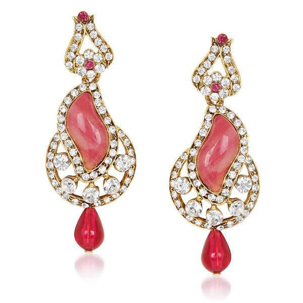 Kriaa ต่างหูตุ้งติ้ง6ชิ้นสีชมพูสไตล์ออสเตรียชุบทอง