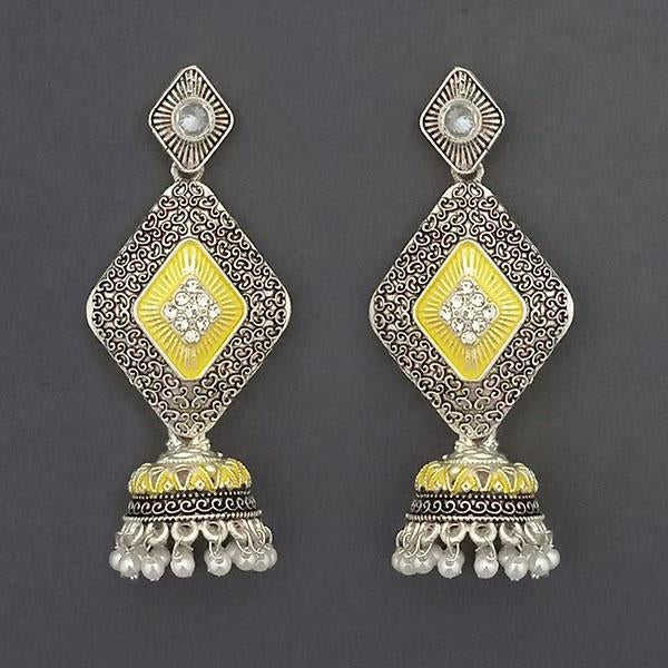 Kriaa ต่างหูห้อยชุบเงินรูปหินและสีเหลือง Meenakari Matte dangler โมเดล1312054A