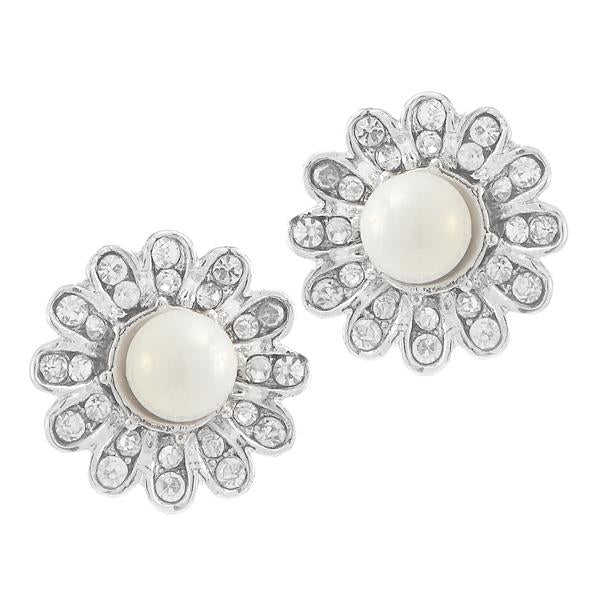 Kriaa ต่างหูมุกสีขาวชุบเงินรูปทรงเรขาคณิตทันสมัยสแตนเลสพร้อมเพทายโรแมนติกสำหรับงานปาร์ตี้