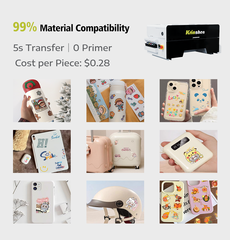 เครื่องพิมพ์ Krinshen Mini UV DTF แบบม้วนต่อม้วน มัลติฟังก์ชั่น หัวพิมพ์แบบหยดน้ำขนาดใหญ่ สำหรับพิมพ์เคสมือถือ ขวด แก้ว โลหะ สติ๊กเกอร์