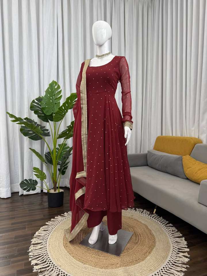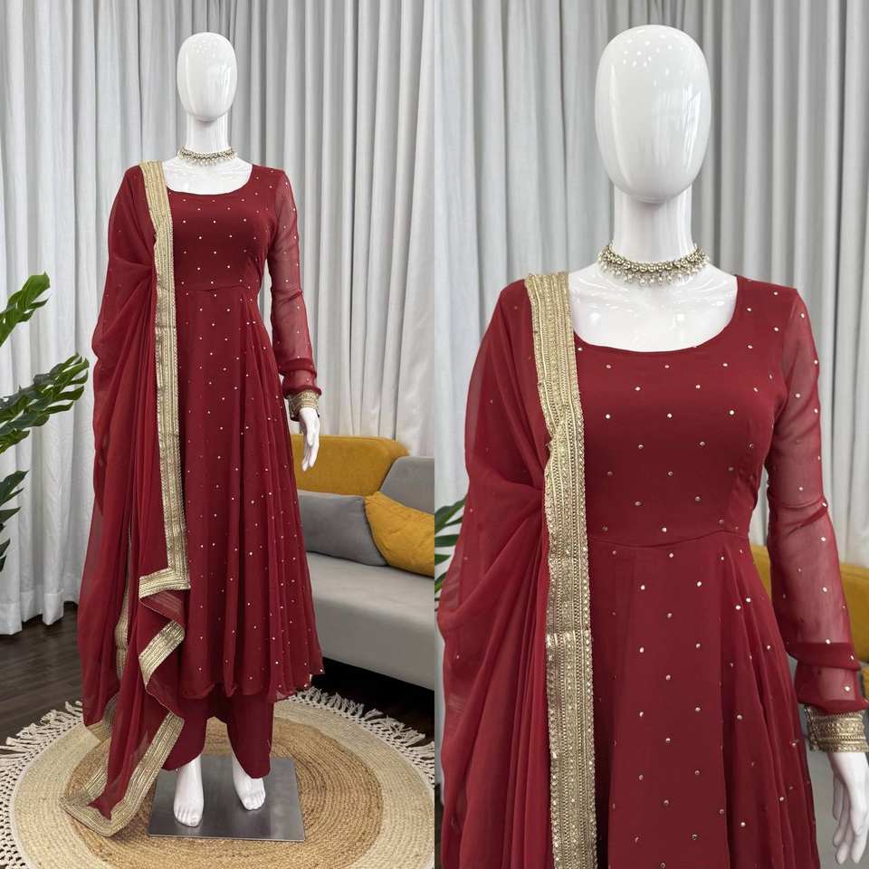 ชุดเดรสงานฝีมือสไตล์ชาติพันธุ์ผ้าจอร์เจียต์ประดับเลื่อม ยี่ห้อ Kritva Fashion เอวสม็อค ไม่ยับ แห้งเร็ว เหมาะสำหรับงานแต่งงานในฤดูหนาว สำหรับผู้หญิง