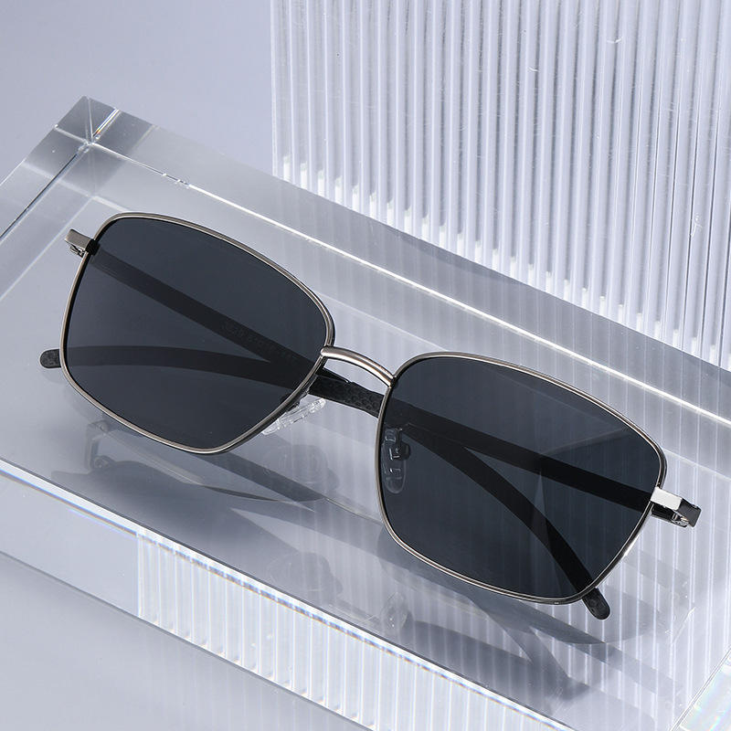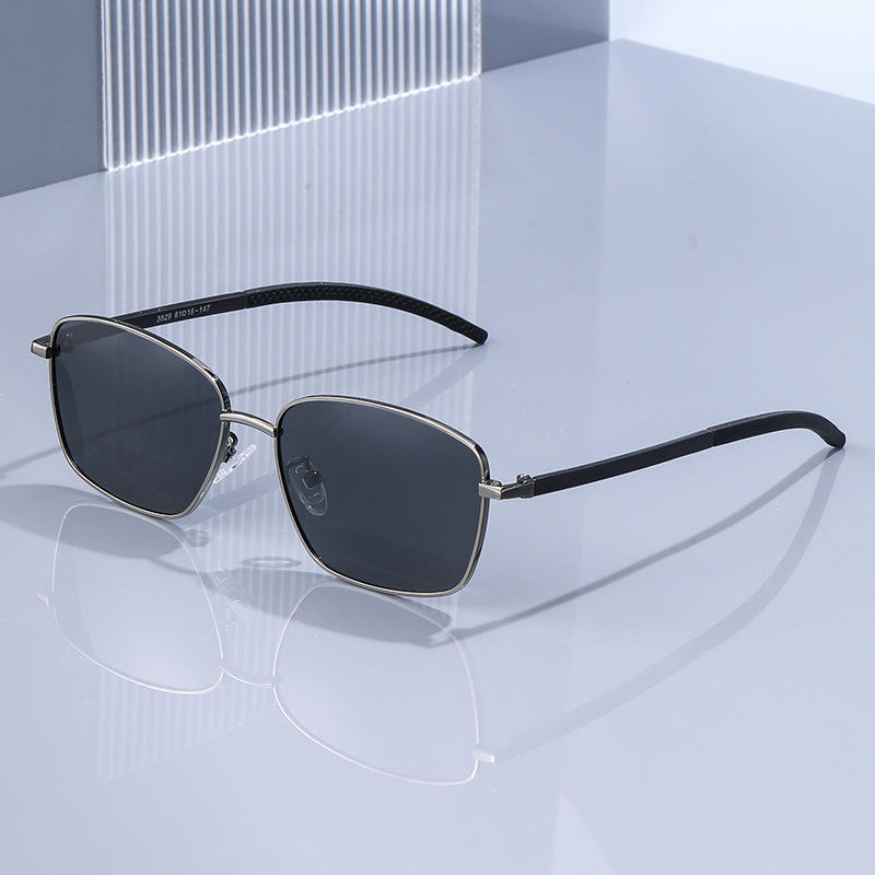 แว่นกันแดดทรงเหลี่ยมโลหะสำหรับผู้ชาย รุ่น Ks-3829 เลนส์โพลาไรซ์ TAC ป้องกันรังสียูวี 400 กรอบสีดำ สไตล์ป้องกันแสงแดดสำหรับกิจกรรมกลางแจ้ง