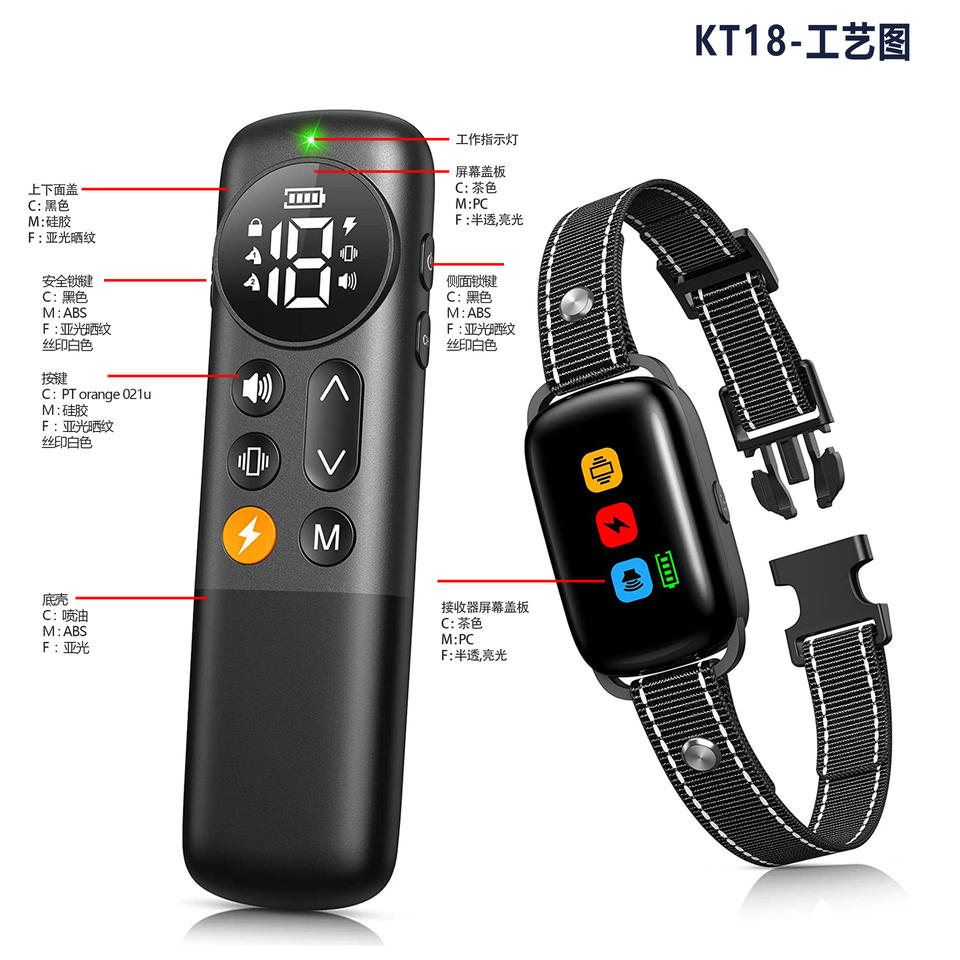 ปลอกคอฝึกสุนัขแบบชาร์จไฟได้กันน้ำควบคุมระยะไกลอุปกรณ์ฝึกสัตว์เลี้ยง Kt-18