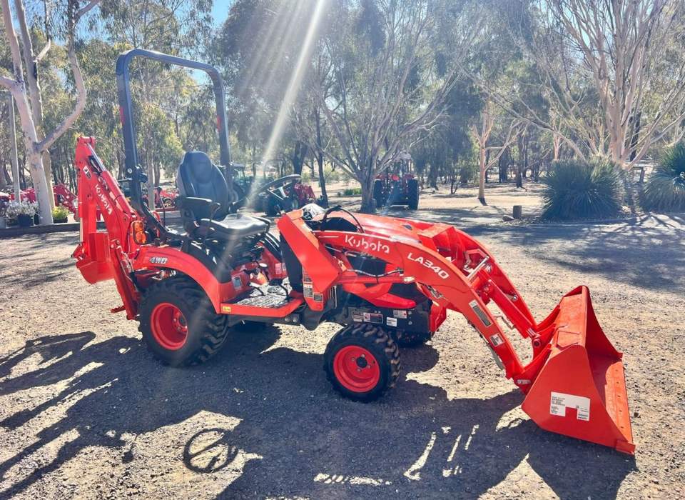 รถแทรกเตอร์ขนาดเล็ก Kubota BX23S 23 แรงม้า เครื่องยนต์ดีเซล ขับเคลื่อน 4 ล้อ พร้อมที่ตักด้านหน้า รถขุดดินด้านหลัง และเครื่องตัดหญ้า