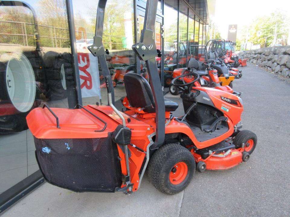 เครื่องตัดหญ้าคูโบต้า GR1600 เครื่องยนต์ดีเซล 2 สูบ 13.5 แรงม้า ระบบส่งกำลังไฮโดรสแตติก ความกว้างการตัด 107 ซม. พร้อมตะกร้าเก็บหญ้า