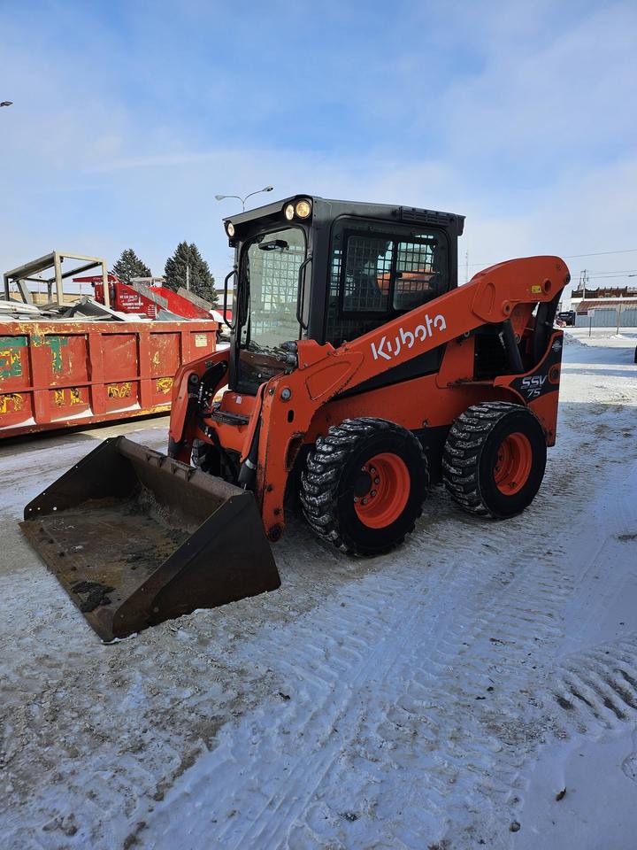รถตักล้อยาง Kubota SSV75 พร้อมระบบ Quick Attach ห้องโดยสารแบบปิดพร้อมระบบทำความร้อน/ปรับอากาศ เครื่องยนต์ดีเซล