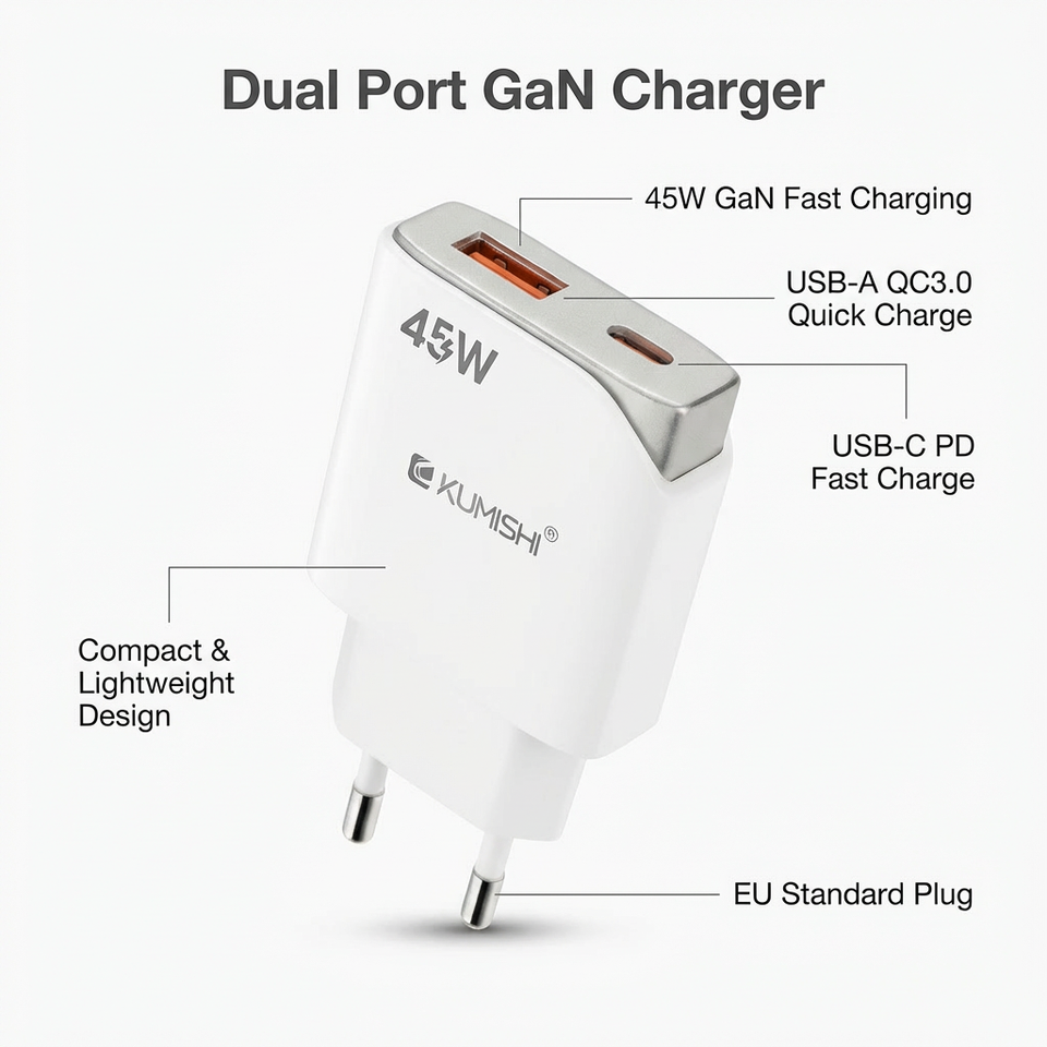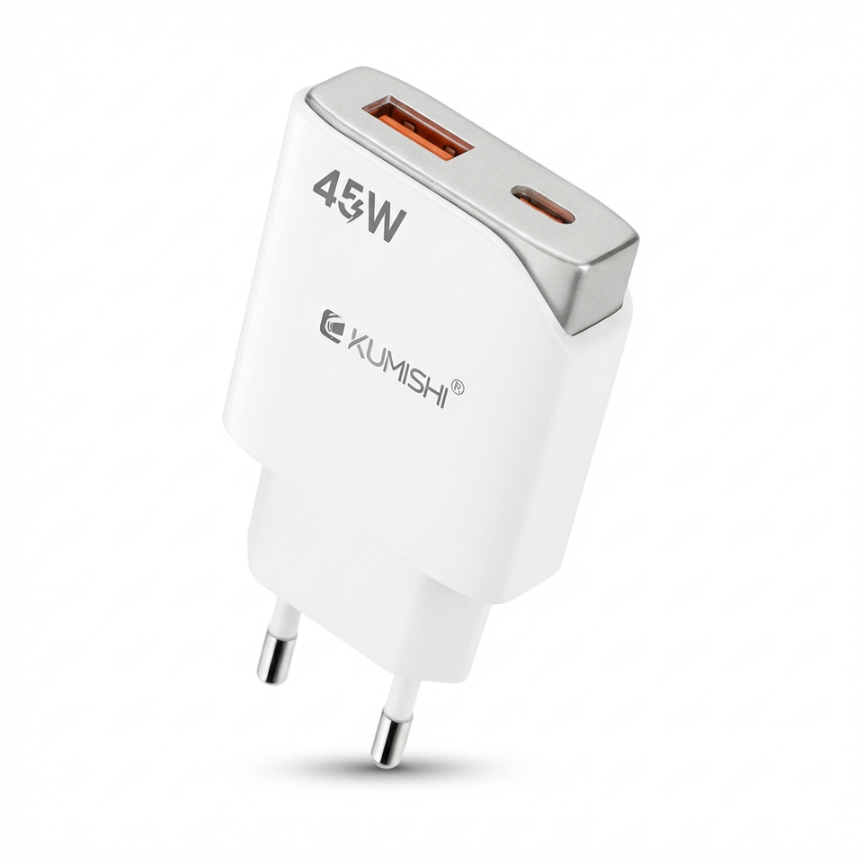 Kumishi อะแดปเตอร์ติดผนังที่ชาร์จเร็ว Type-C แบบพอร์ตคู่45W PD 5V/3A
