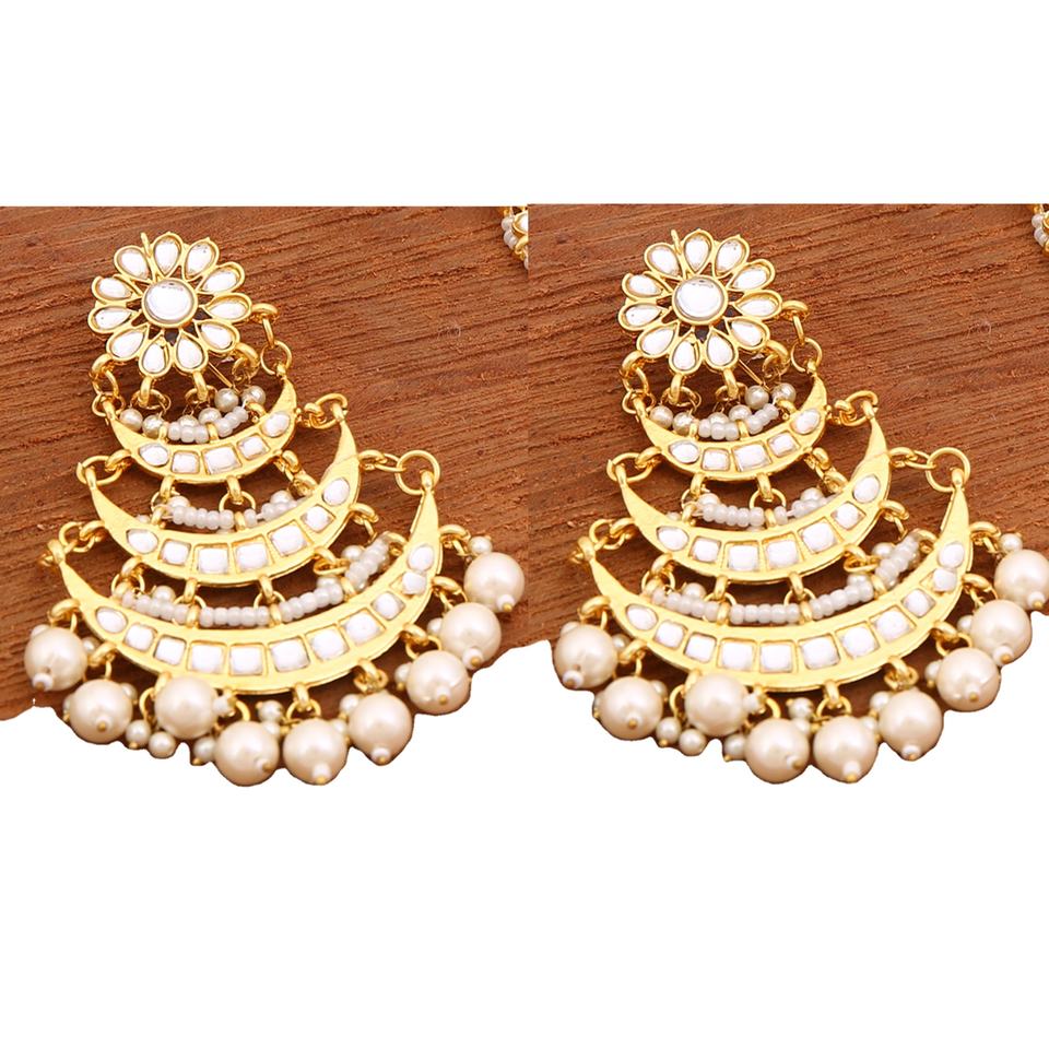 ต่างหูแบบห้อย Kundan Jadau สไตล์ไฮเดราบาดี ประดับมุกเทียม โลหะผสมสีขาว คริสตัล ไรน์สโตน แฟชั่นสำหรับงานแต่งงาน ผู้หญิง สาวๆ