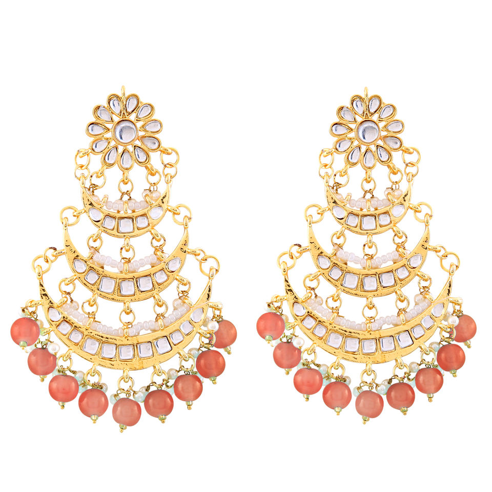 ต่างหูแบบห้อย Kundan Jadau ประดับมุกเทียม คริสตัล และฐานโลหะผสมประดับเพชรเทียม ดีไซน์ทันสมัยสำหรับงานแต่งงาน