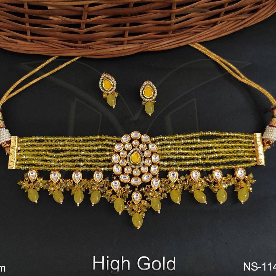 เครื่องประดับ Kundan ปาร์ตี้ชุบทองสูงสวมชุดสร้อยคอลูกปัด Kundan ที่สวยงาม