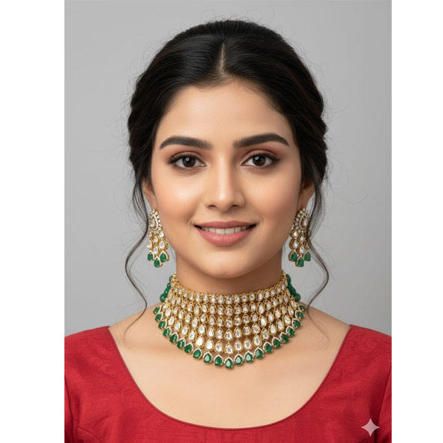Kundan Meena Diamond Polki Bridal Chokerหินหลัก