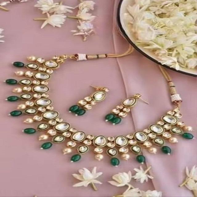 ชุดสร้อยคอแบบ Kundan ด้านหลังประดับลาย Meenakari ต่างหูสวยงาม เหมาะสำหรับงานแต่งงาน งานเทศกาล สามารถปรับแต่งสีได้ทุกสี