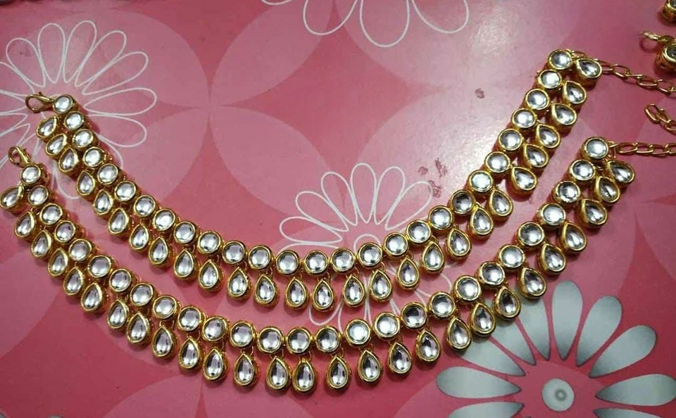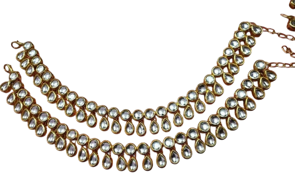 กำไลข้อเท้า Kundan ที่สร้างขึ้นด้วยรายละเอียดที่ซับซ้อนและการตกแต่งที่สมบูรณ์แบบสำหรับการเพิ่มสัมผัสของความสง่างามให้กับรูปลักษณ์แบบดั้งเดิมใดๆ