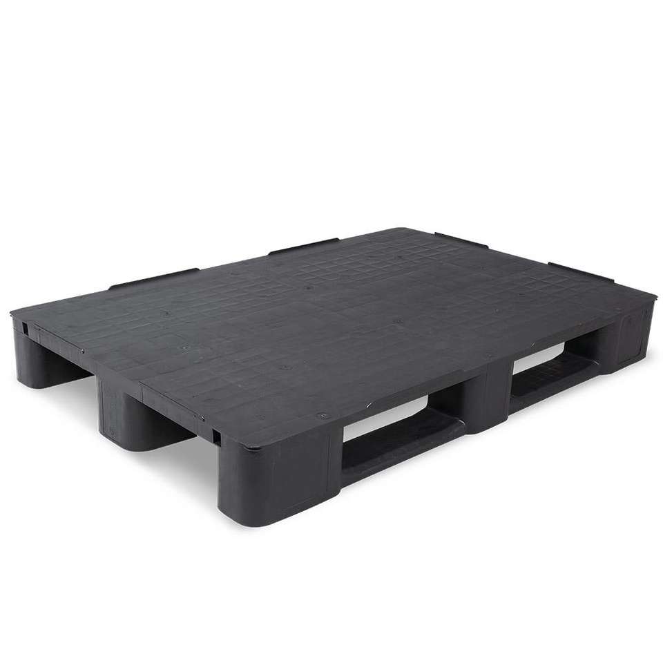 พาเลทพลาสติกขนาดยุโรปพร้อม3ล้อลากและขอบด้านความปลอดภัย7มม. lxwxh 1200x800x145มม. พาเลทโลจิสติกส์สีดำปิดด้านบน
