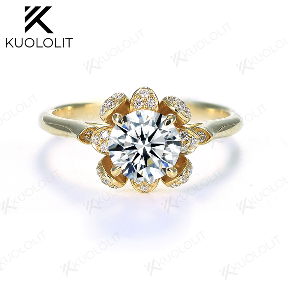 แหวนมอสซาไนต์ทรงกลมขนาด 6.5 มม. รุ่น Kuololit HK 1CT สำหรับผู้หญิง ทองคำแท้ 18K 14K 10K สีเหลือง คุณภาพ D/VVS1 เหมาะสำหรับแหวนหมั้นและงานแต่งงาน