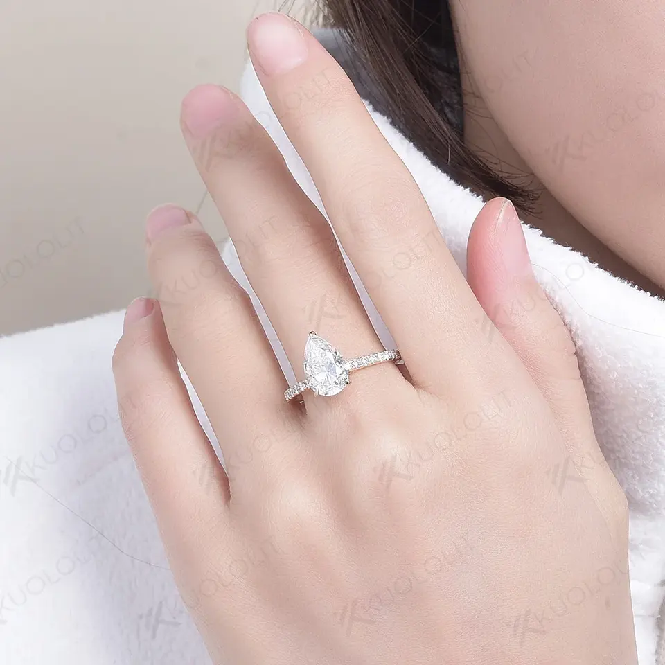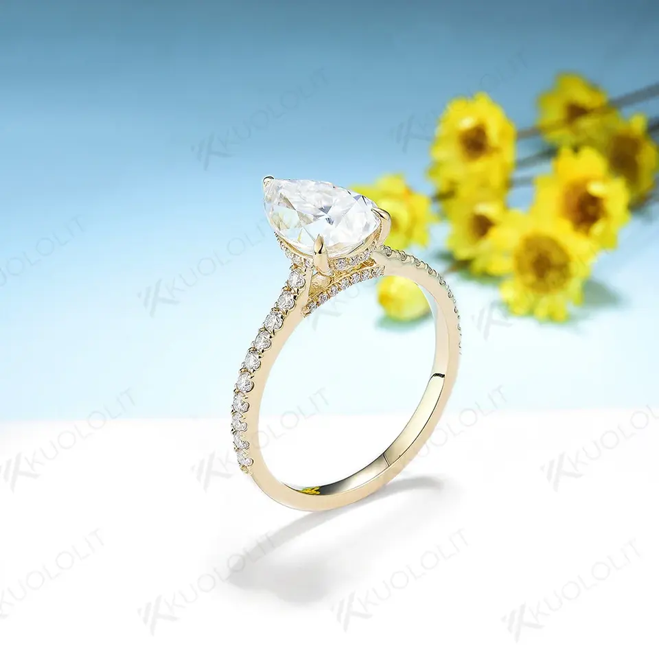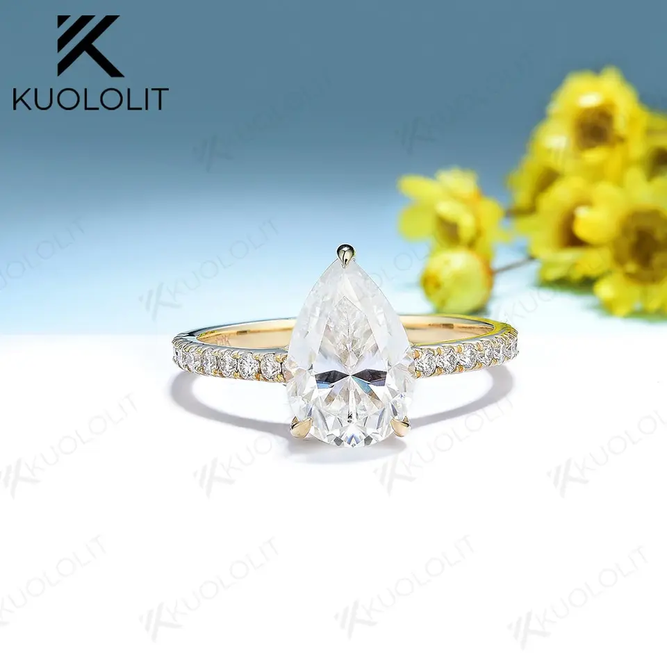 แหวนมอสซาไนต์ Kuololit HK 4CT ระดับ D/VVS1 สำหรับผู้หญิง ทองคำแท้ 14K 10K 925 เงินแท้ ทองเหลือง รูปทรงลูกแพร์ สำหรับวันครบรอบ แต่งงาน หมั้น