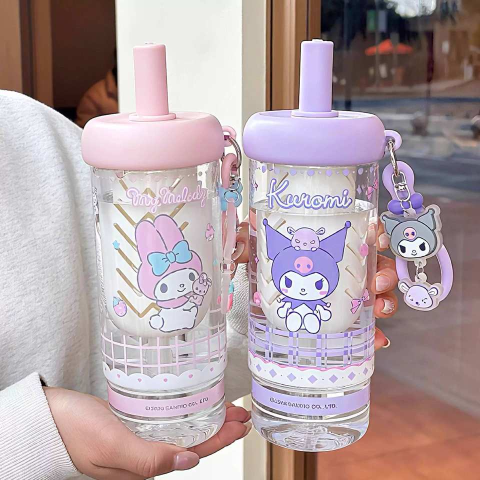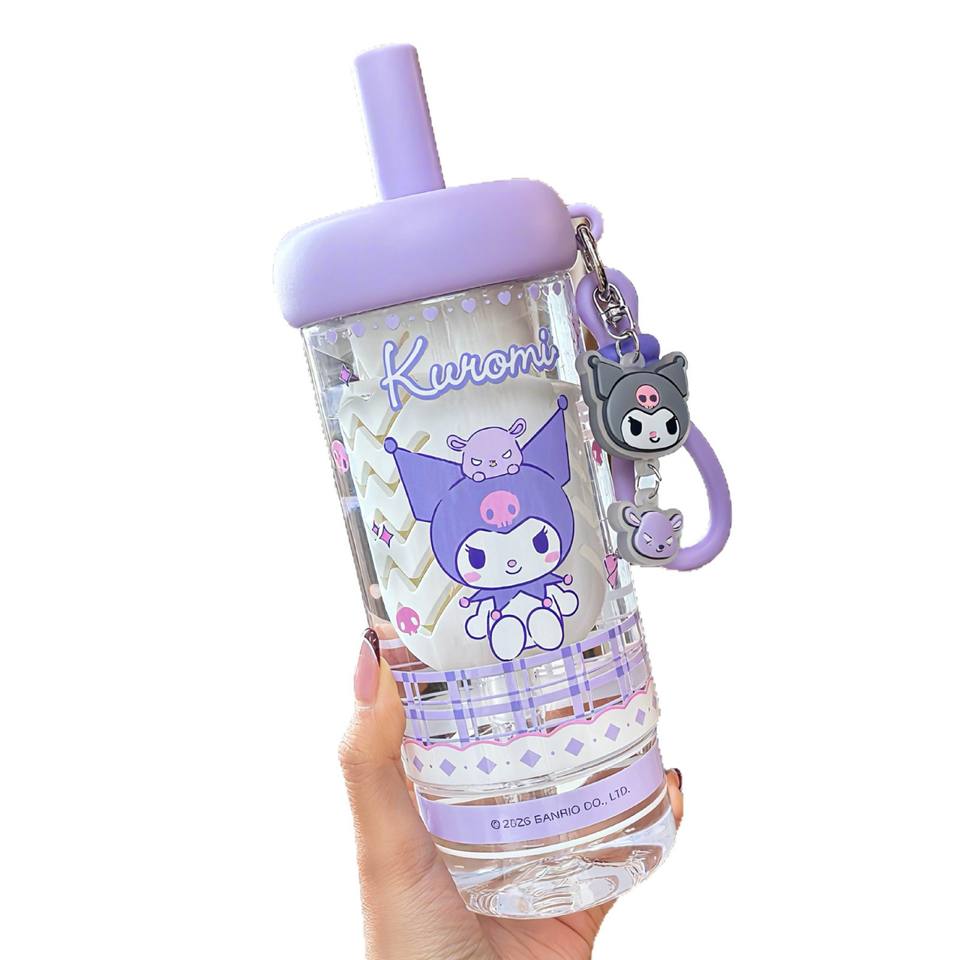 ขวดน้ำพลาสติกคุโรมิ โปชาโกะ พร้อมหลอดดูด 500 มล. แก้วน้ำลายการ์ตูนสำหรับเด็ก ใช้สำหรับไปโรงเรียน