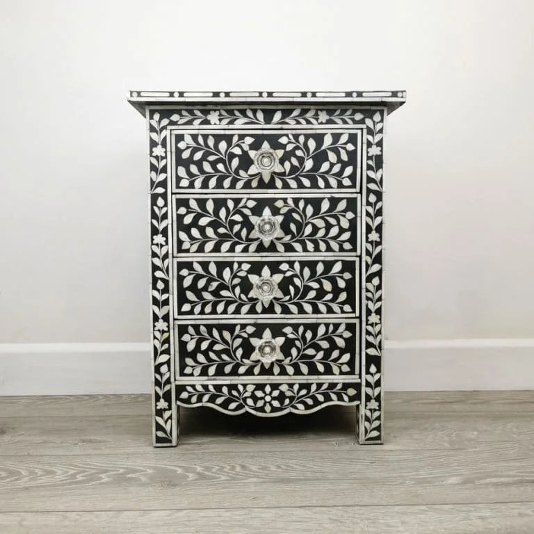 เก้าอี้คอนโซลฝังกระดูกศิลปะคูซั่ม ออตโตมันและโต๊ะปรับแต่งได้เพื่อตกแต่งสถานที่สวยงามของคุณจากอินเดีย