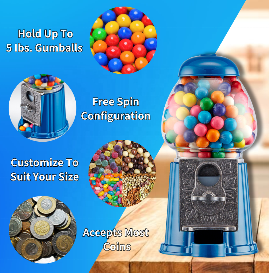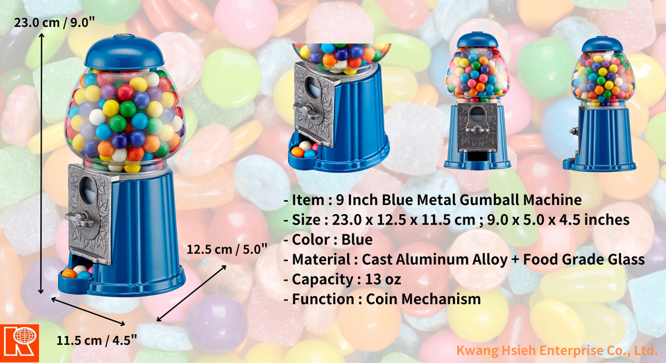 Name:Kwang Hsieh 9" Heavy Duty Metal Glass Coin Operated Gumball Machine