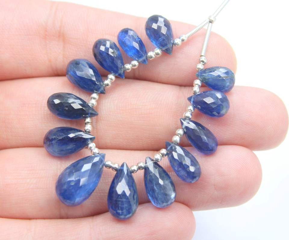 ลูกปัดเหลี่ยมเพชรพลอย kyanite รูปร่างหยดลูกปัดอัญมณีธรรมชาติ