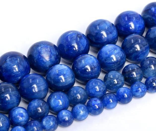 ไคยาไนต์ทรงกลม ลูกปัดเจียระไนเรียบๆ สำหรับทำเครื่องประดับ ราคาขายส่ง คุณภาพธรรมชาติที่น่าทึ่ง