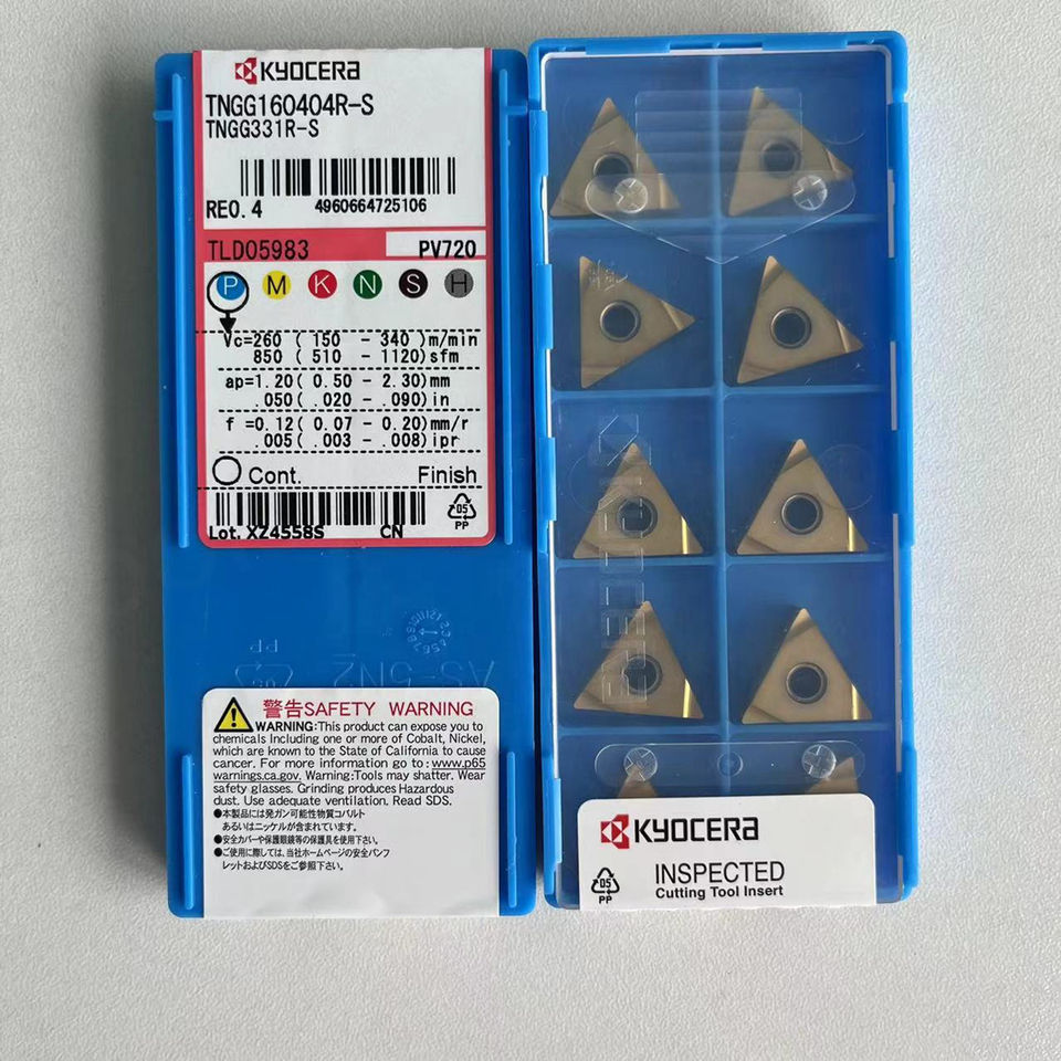 Kyoceras TNGG160404R-S แทรกคาร์ไบด์ทรงสามเหลี่ยมแบบพรีเมี่ยมเครื่องมือกลึงภายใน65HRC แข็งมากสำหรับเครื่องกลึง CNC
