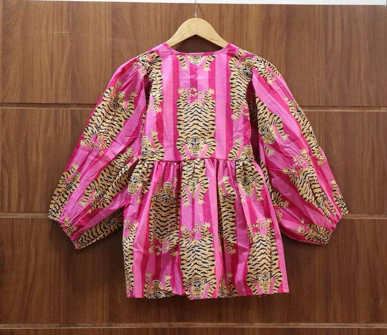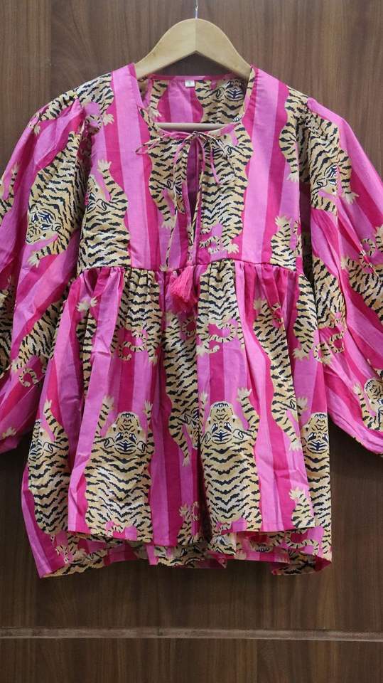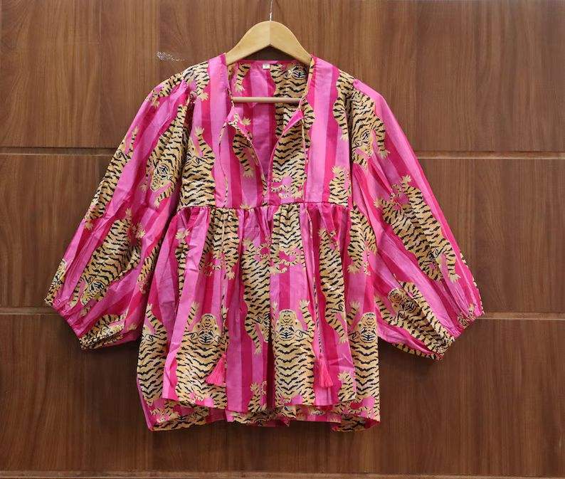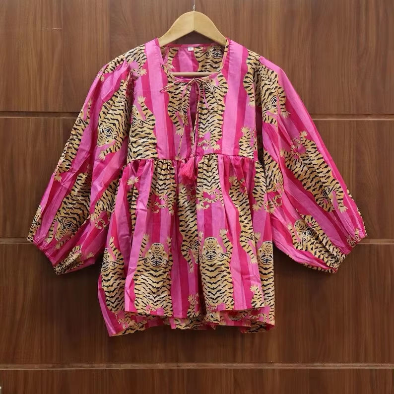 Kyra Top Dress Mini Dress tiger Block Print Tunic Top Deep Neck with string closer