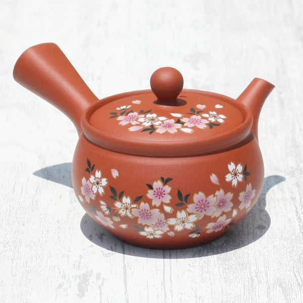 กาน้ำชาเซรามิกและสแตนเลส Kyusu Red Sakura พร้อมฝาปิดและที่กรองสแตนเลส Tokoname-Yaki สำหรับเป็นของขวัญ