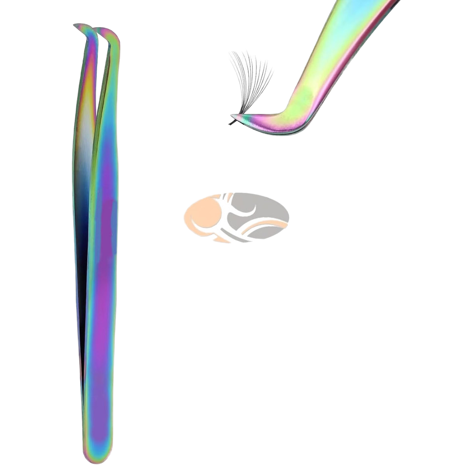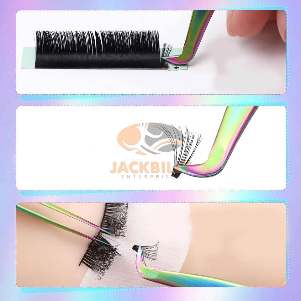 แหนบโค้งรุ่น L ของ Jackbilly Enterprises สำหรับต่อขนตาแบบวอลุ่ม - ปลายไฟเบอร์สีดำ แหนบสแตนเลส (ความหนา 0.07 มม.)