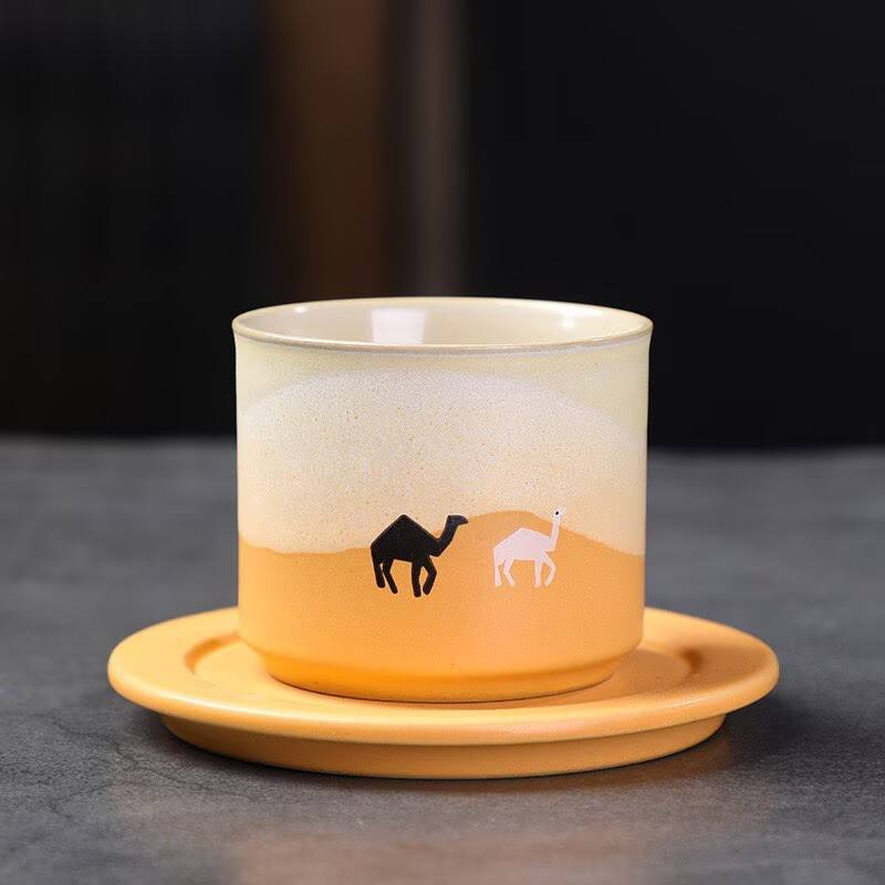 ชุดถ้วยกาแฟเอสเปรสโซลายอูฐทะเลทรายตะวันออกกลาง ขนาด 80 มล. สำหรับร้านอาหารและคาเฟ่
