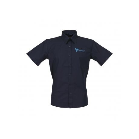 เสื้อเชิ้ตผ้าปอปลินแขนสั้นของผู้ชายคลาสสิกพร้อมกระดุมปกคอจีนแบบเรียบง่ายดูแลรักษาง่าย