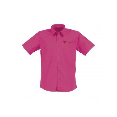 เสื้อเชิ้ตผ้าปอปลินแขนสั้นของผู้ชายคลาสสิกพร้อมกระดุมปกคอจีนแบบเรียบง่ายดูแลรักษาง่าย