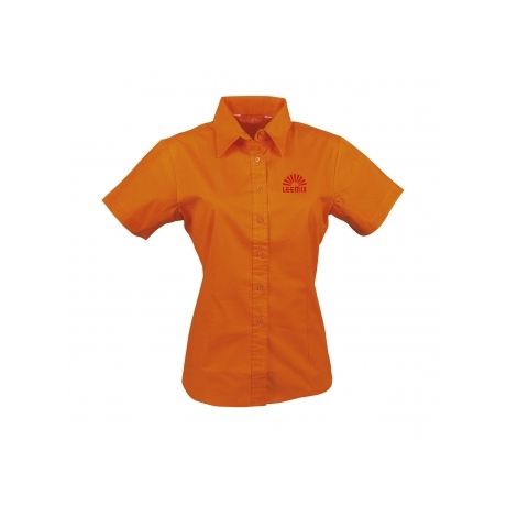 L&S Women's Casual Poplin Blouse Short Sleeve Trendy Solid Pattern Size XL Skinny Fit Crop Top Logo for Summer Autumn Spring