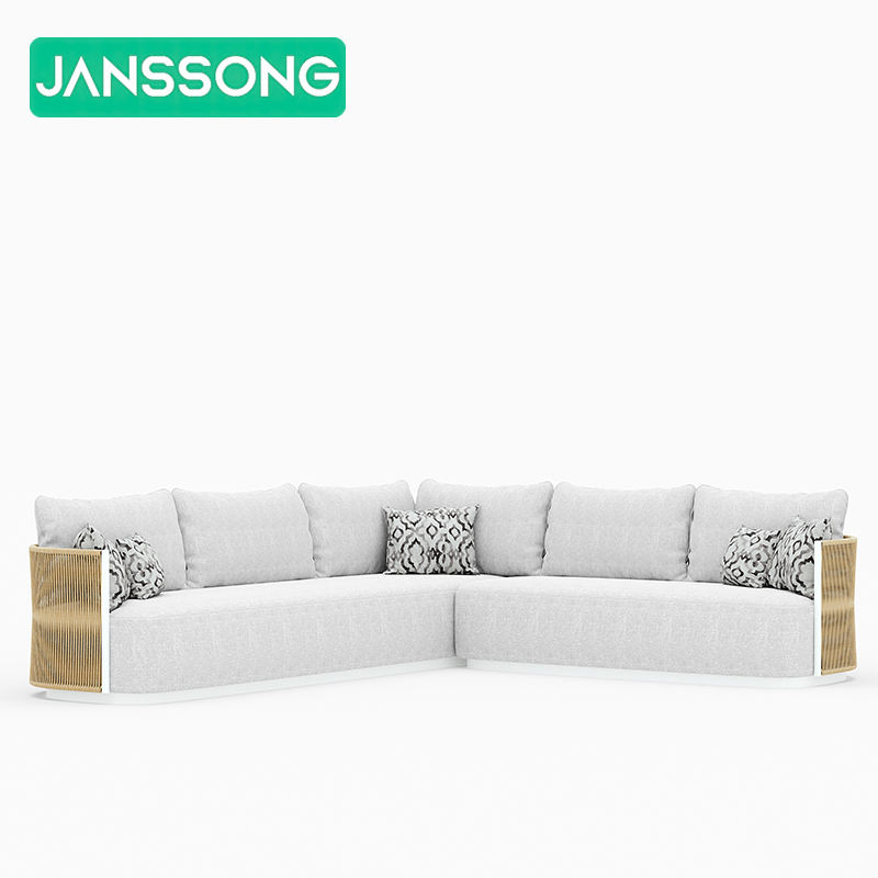 ชุดโซฟาทรงตัวแอลสำหรับลานบ้าน สระว่ายน้ำ โซฟาเชือกสไตล์โมเดิร์น เฟอร์นิเจอร์กลางแจ้ง ชุดโซฟาสวน เฟอร์นิเจอร์สวน เฟอร์นิเจอร์ริมสระน้ำโลหะ