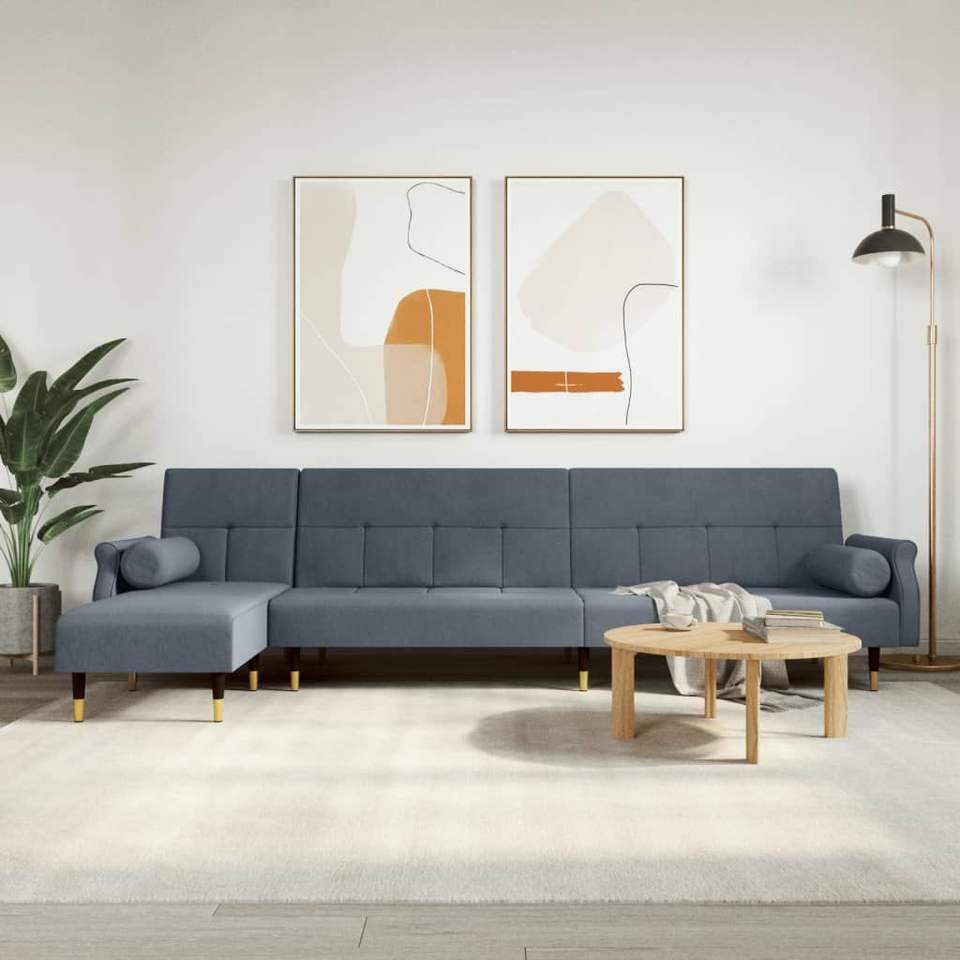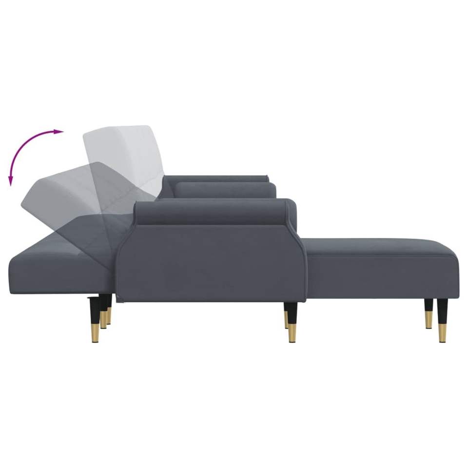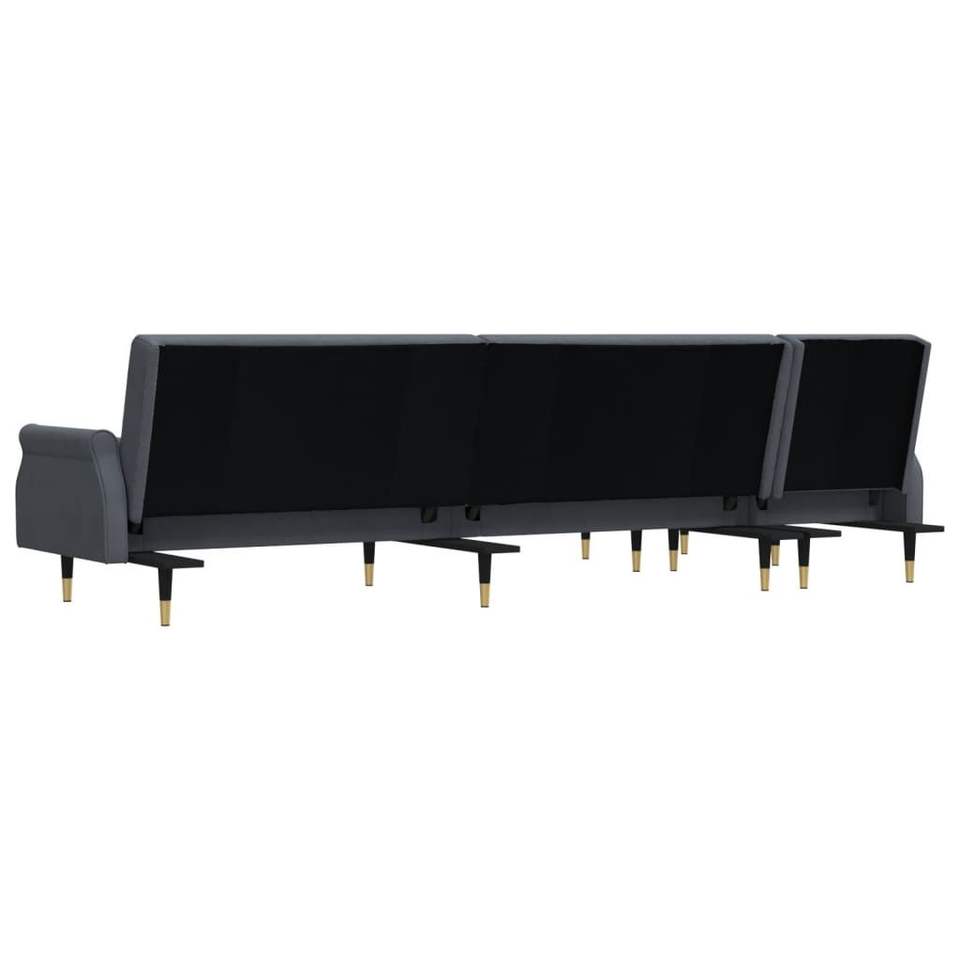 โซฟาเบดกำมะหยี่สีเทาเข้มรูปตัว L โครงสร้างโลหะไม้อัดโพลีเอสเตอร์ 100%